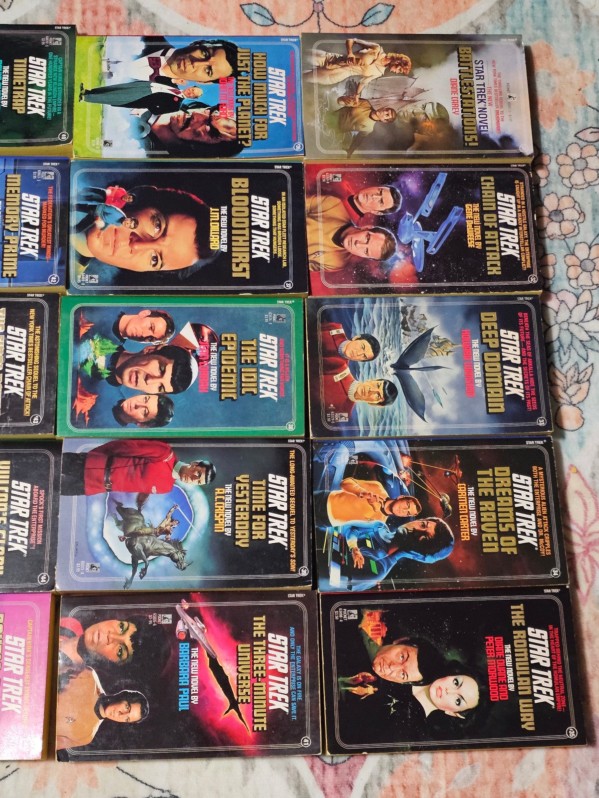 The product is a huge lot of 79 first printings of Star Trek: The Original Series novels in paperback format. These novels, part of the popular Star Trek series, are intended for a wide audience including young adults and adults. Written in English and featuring illustrations, these science fiction novels have been adapted into films and TV shows, making them a must-have for fans of the franchise.